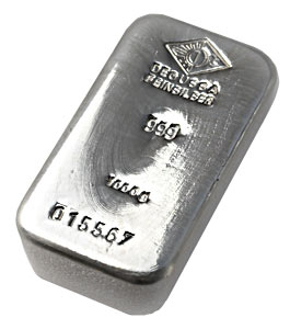 Wir kaufen an: Anlagebarren Silberbarren mit der Aufschrift Degussa, Umicore oder Heraeus. Die Barren gibt es in 5 bis 100 g in geprägter Form und in 250 g bis 5 kg in gegossener Form. Die gängiste Barrengröße ist 1 kg. Sammlerbarren Kleine Motiv-Barren bestehen häufig aus Sterlingsilber (925/1000). Meist komplette Sammlungen mit Verpackung und Zertifikat. Das Einzelgewicht wird mit 1000 crains angegeben, was 64,8 Gramm pro Barren entspricht. Diese Barren kaufen wir auch an, jedoch nur zum Preis von Silbermedaillen! |